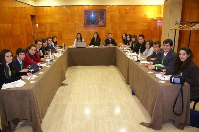16:30 Después de comer nos reunimos por delegaciones, los cuatro alumnos y el profesor, en nuestro caso profesora, además se  nos asignó un presidente, en nuestro caso Bea Regera que nos asesoró fantasticamente sobre todas las dudas que nos quedaban sobre la sesión que se celebraría el día siguiente. También hicimos una lectura pausada de las cuatro resoluciones aclarando conceptos con los autores correspondientes y, por que no decirlo, buscando vacios a los cuales se podría interponer una enmienda parcial e incluso total.