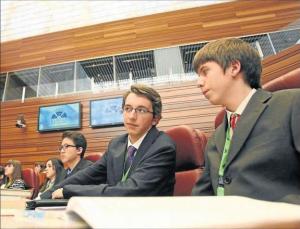 Cada portavoz de delegación leímos el discurso de bienvenida ante la expectación de los 70 jóvenes y sus profesores que no conocíamos.