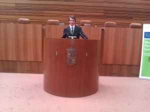 12:00h Nos dio la bienvenida el Excmo. Sr. D. José Manuel Fernández Santiago, Presidente de las Cortes de Castilla y León. Nos comentó muy majo lo mucho que le gustaba que por las Cortes se vieran caras jóvenes.