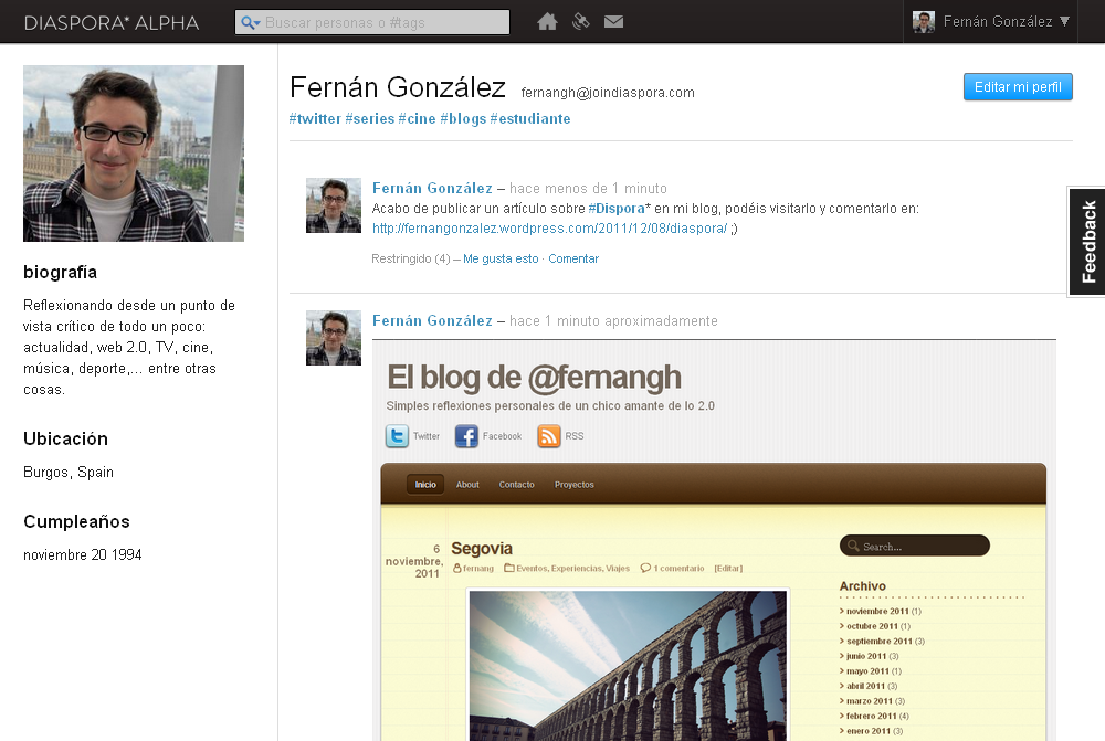 Si estáis registrados podéis encontrarme en mi perfil de Diáspora*.
