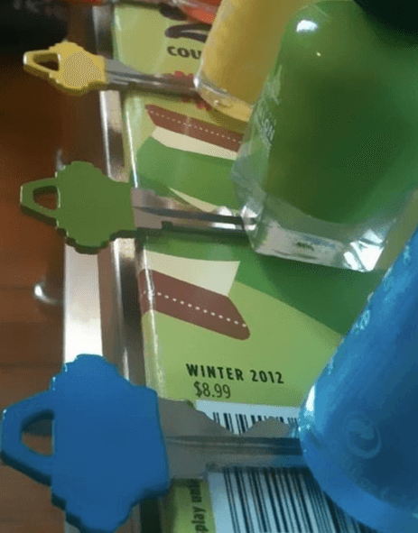 Para no tener que probar día tras día, qué llave es para qué puerta, en lugar de poner post-its usa pinta uñas para saber a qué corresponde cada una.