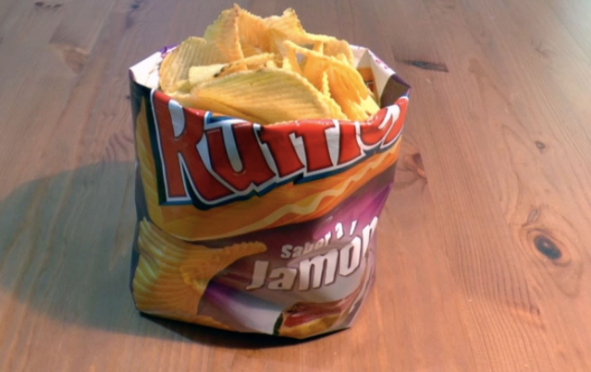 8/ Aprovecha la propia bolsa de patatas para hacer un recipiente