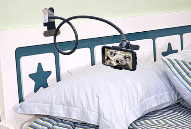 Usar el móvil estando en posición horizontal no es lo más recomendable. Si lo sueles hacer ya te habrás dado alguna vez con el teléfono en la cara. Para evitarlo yo tengo un soporte de móvil para el coche que en la cama hace una función espectacular. Confieso que, aunque igual no es muy recomendable para la vista, lo uso para ver series o ver vídeos de YouTube.