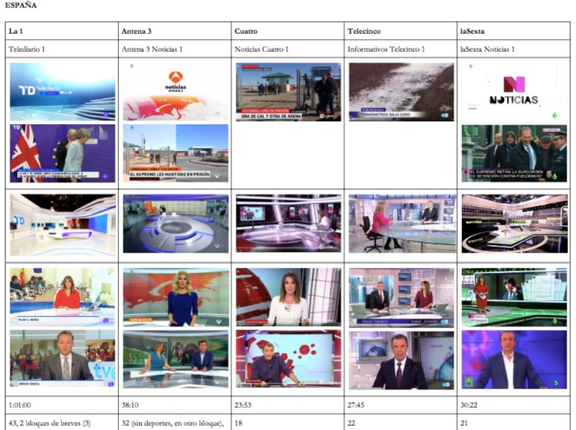 El análisis de las parrillas de programación de un día completo de las cadenas seleccionadas de los seis países seleccionados arrojan datos muy interesantes. En primer lugar, cabe destacar que el informativo más frecuente es el de la tarde-noche. Prácticamente todas las cadenas analizadas tienen un noticiario al terminar la tarde o al comenzar la noche.