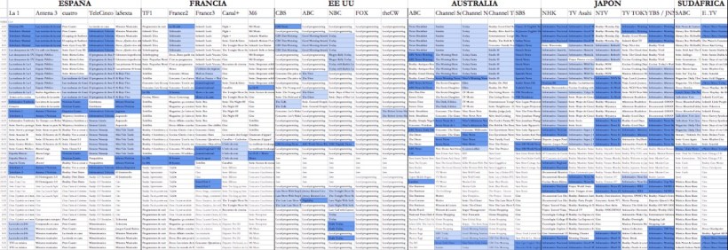Por último, como pincelada del mundo de los magazines, que van desde la tertulia política a los formatos más desenfadados, podríamos destacar que en España tienen una preponderancia mayor que en resto de los países seleccionados. En Francia se apuesta mayoritariamente por otros formatos (series, documentales, cine…). En Estados Unidos hay magazines de corte informativo hasta las 9:00 y después hay programas más cercanos al entretenimiento. En Australia hasta las 12:00 sí que hay programas de actualidad en la mayoría de informativos. En Japón se entretejen formatos muy variados que van de informativos al género del magazine, a los realities o la cocina. Por último, en Sudáfrica predominan las series en la mañana del day time.